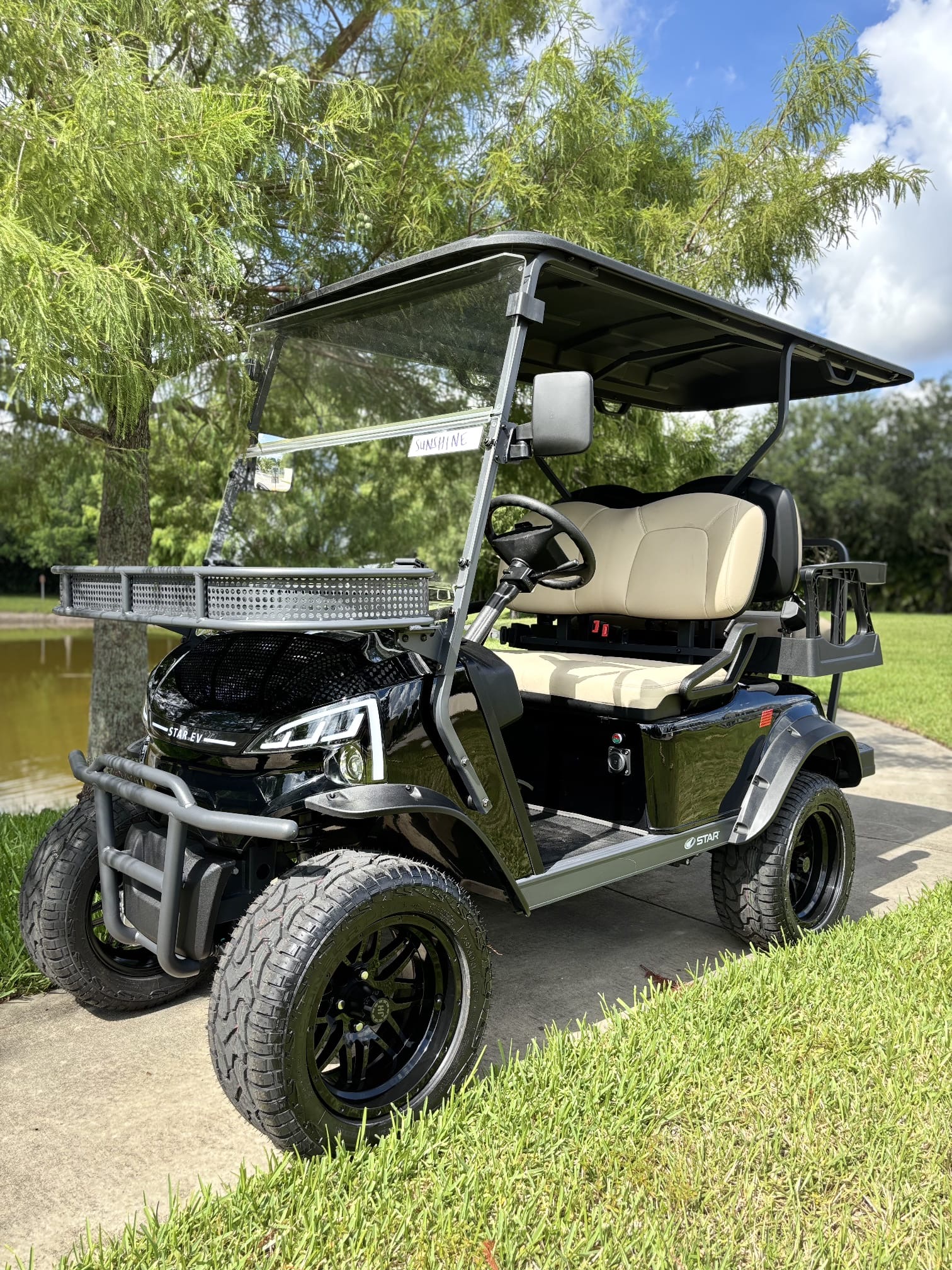 Experience unmatched performance and sleek design with the 2025 STAR EV J-Model Street Legal Golf Cart in bold black. Equipped with a powerful lithium battery and built for both comfort and road compliance, this premium cart is perfect for South Florida lifestyles. Available now at Sunshine Golf Car.