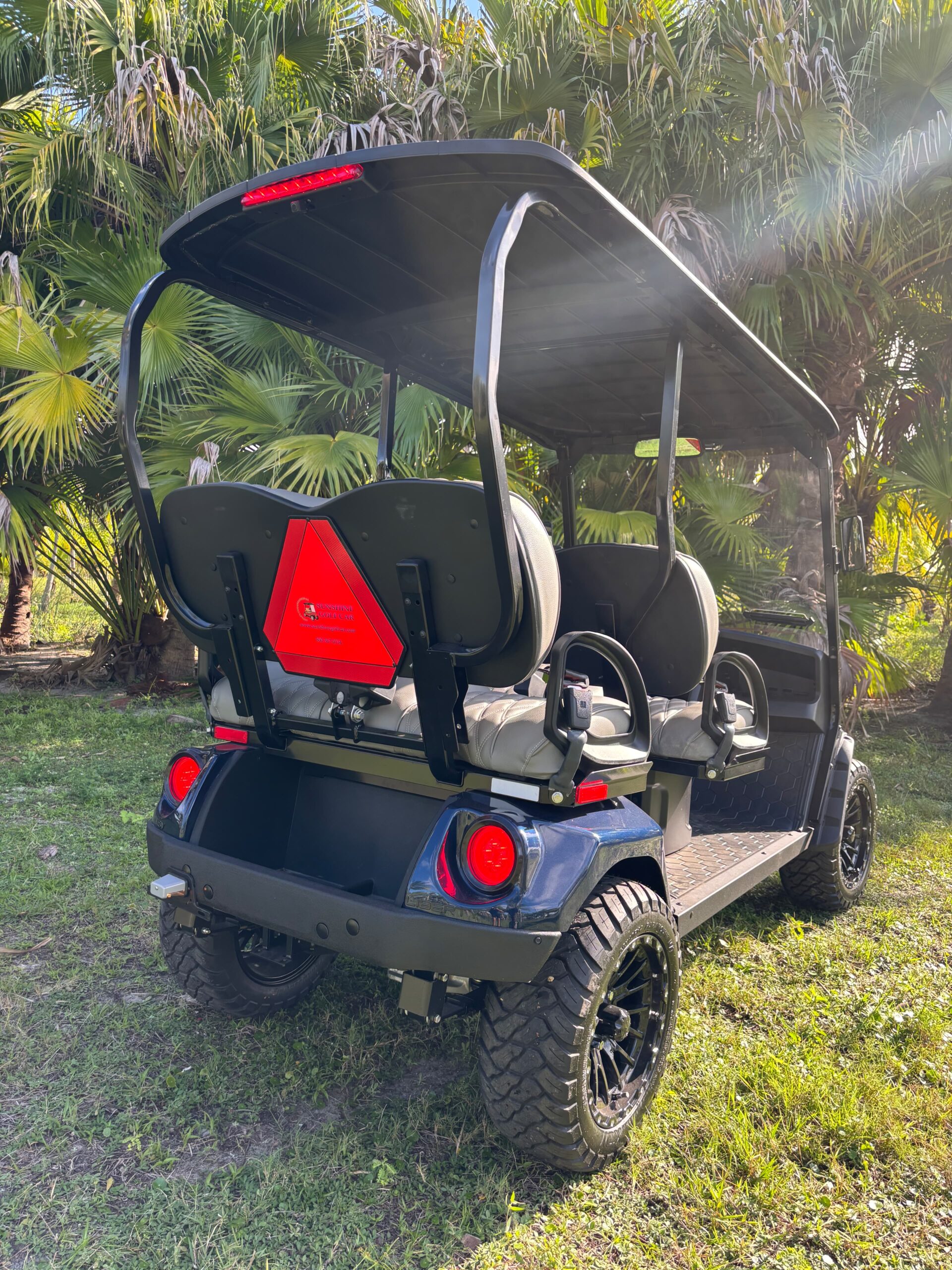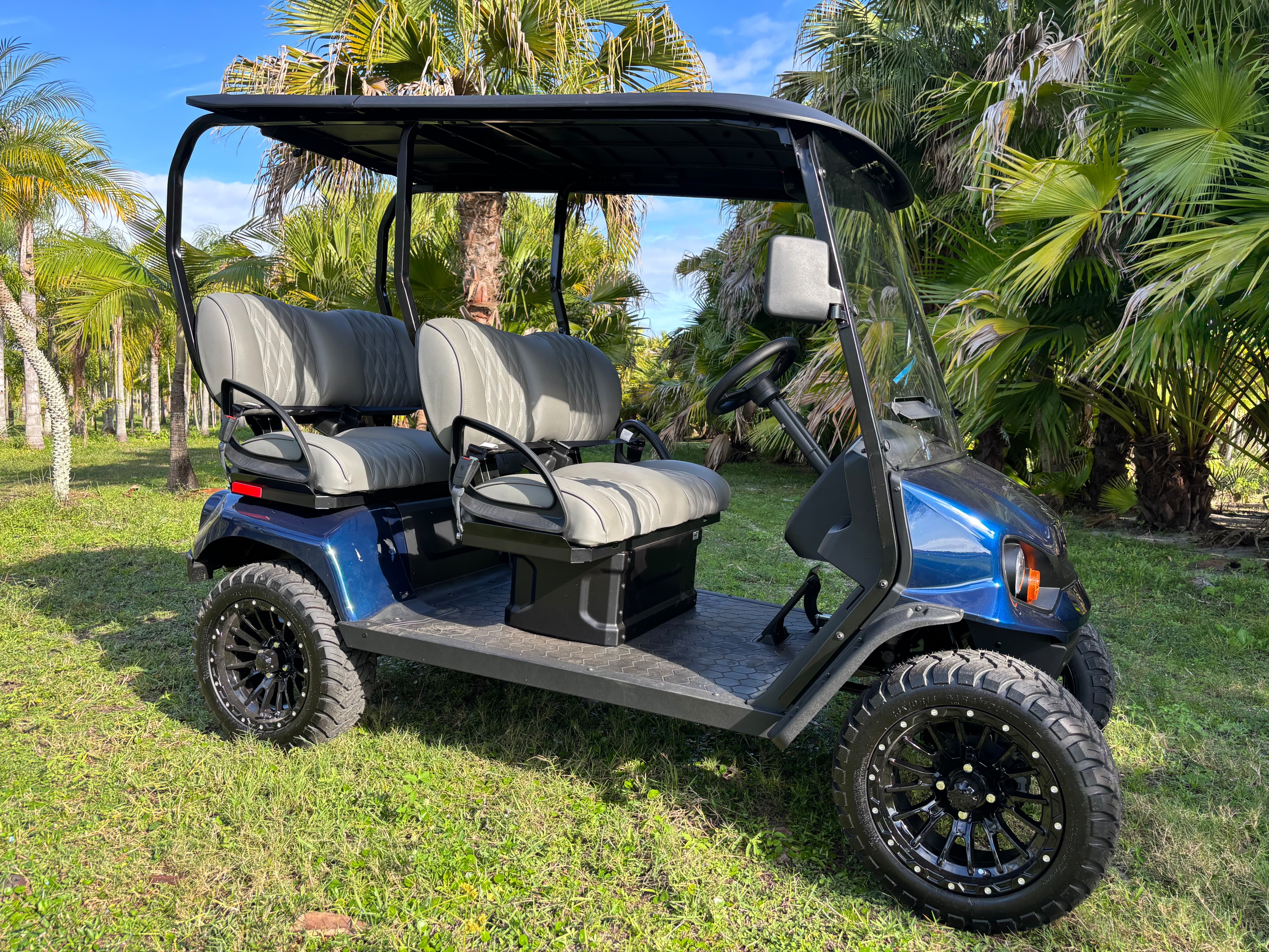 Built to meet LSV requirements, the Liberty comes equipped for road use with essential safety features while maintaining a smooth, quiet ride. The striking blue exterior gives it a clean, modern look, while the spacious interior provides comfortable seating and thoughtful design for passengers and drivers alike.