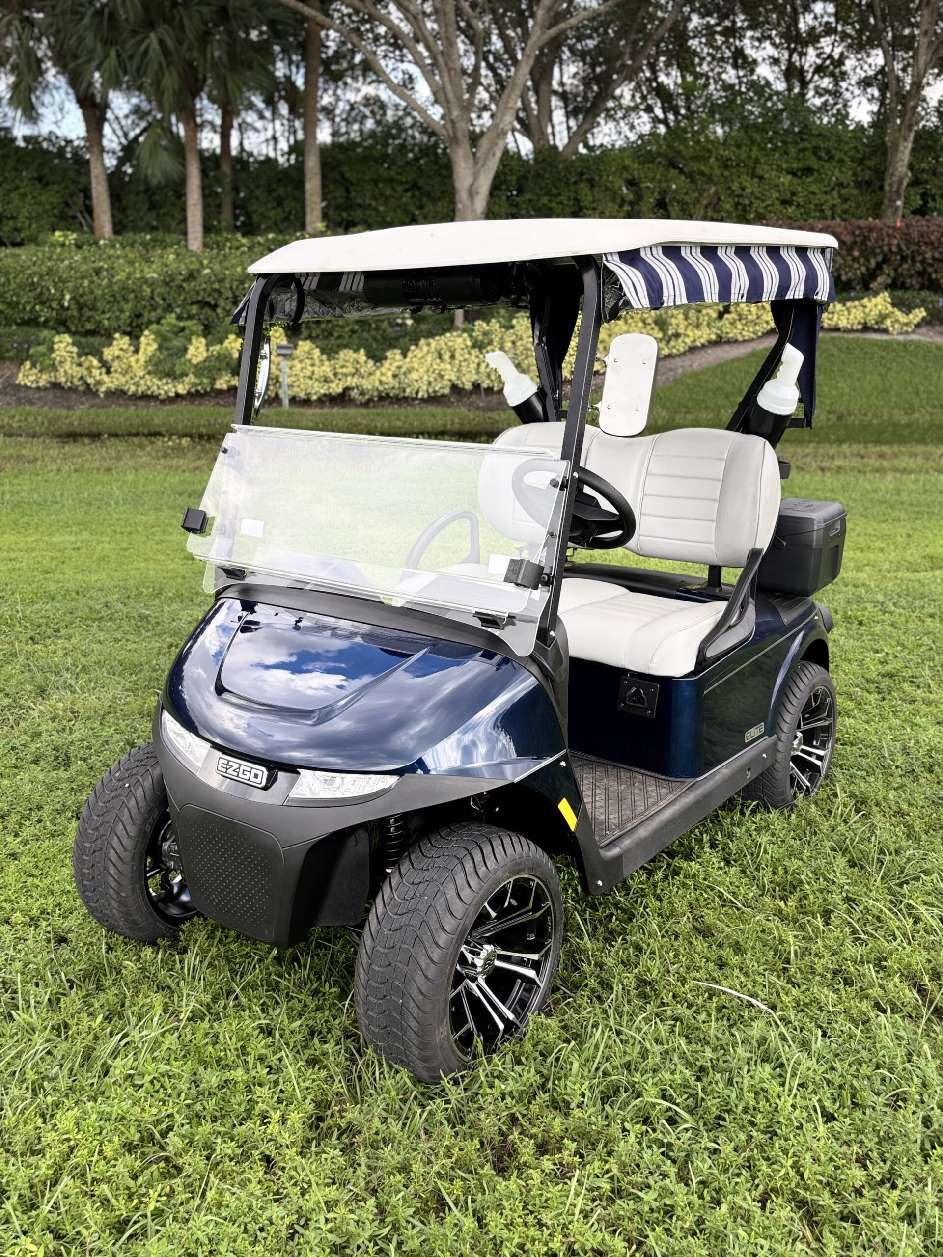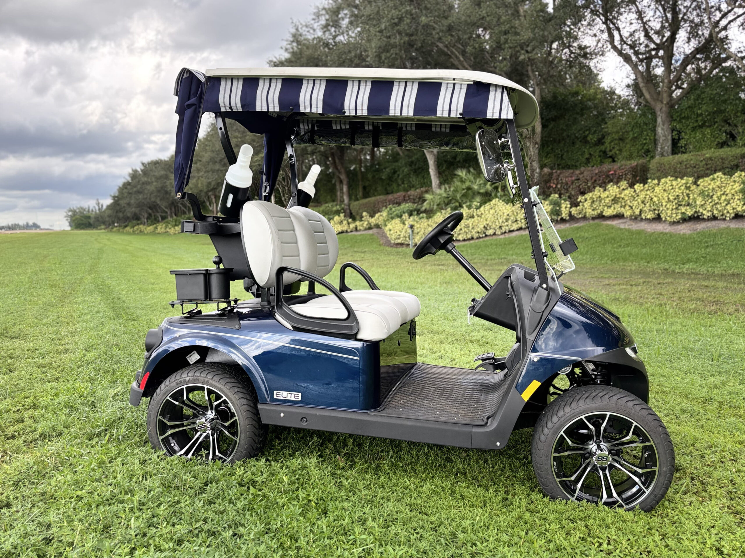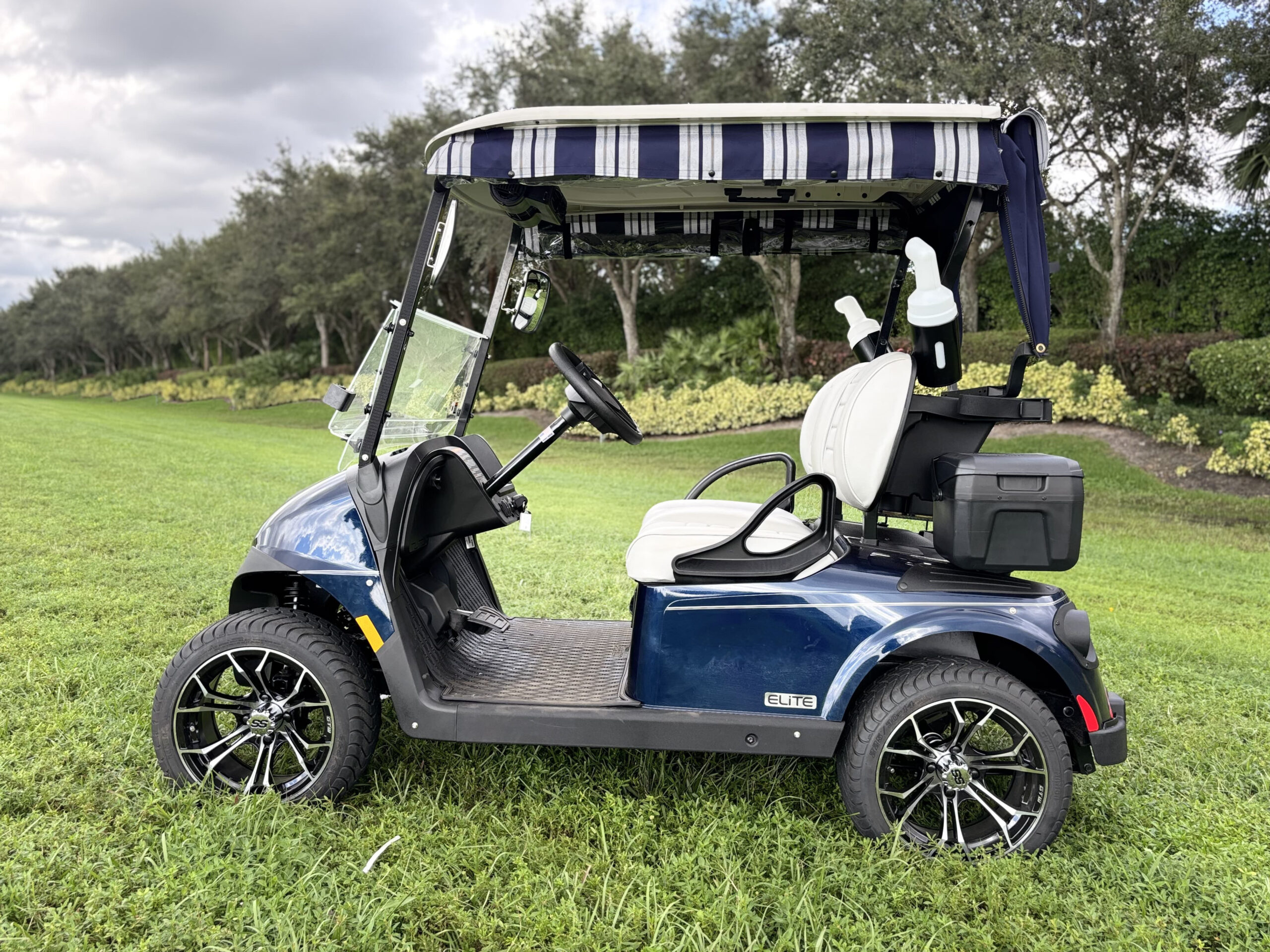 Experience the perfect blend of performance and style with the 2026 E-Z-GO RXV ELiTE Blue with Premium White Seats, now available at Sunshine Golf Car in South Florida. The striking Blue finish paired with elegant premium white seating gives this cart a clean, coastal-inspired look ideal for Florida living.