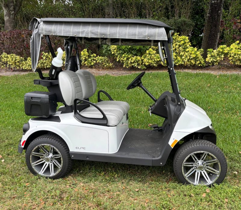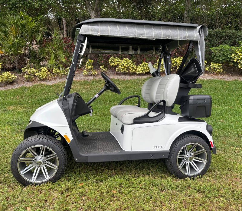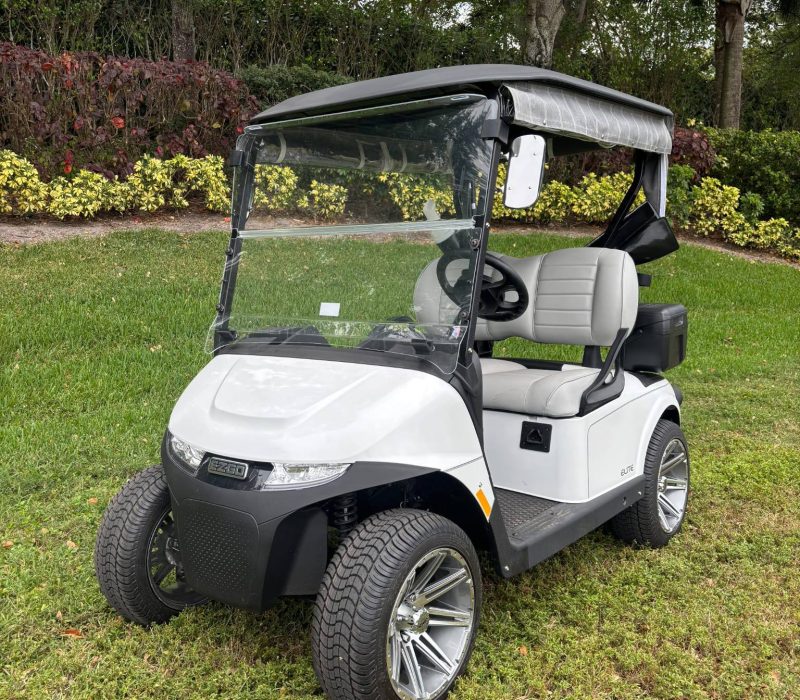 The 2026 E-Z-GO RXV Freedom Elite Bright White comes equipped with a durable enclosure, premium seats, and custom wheels for a comfortable and protected ride. Ideal for golf courses or neighborhood cruising in any weather, this golf-ready cart combines style, convenience, and performance. Its sleek Bright White finish offers timeless appeal, while the enclosure ensures you stay shielded from the elements. Available now at Sunshine Golf Car, this model delivers comfort and versatility all year round.