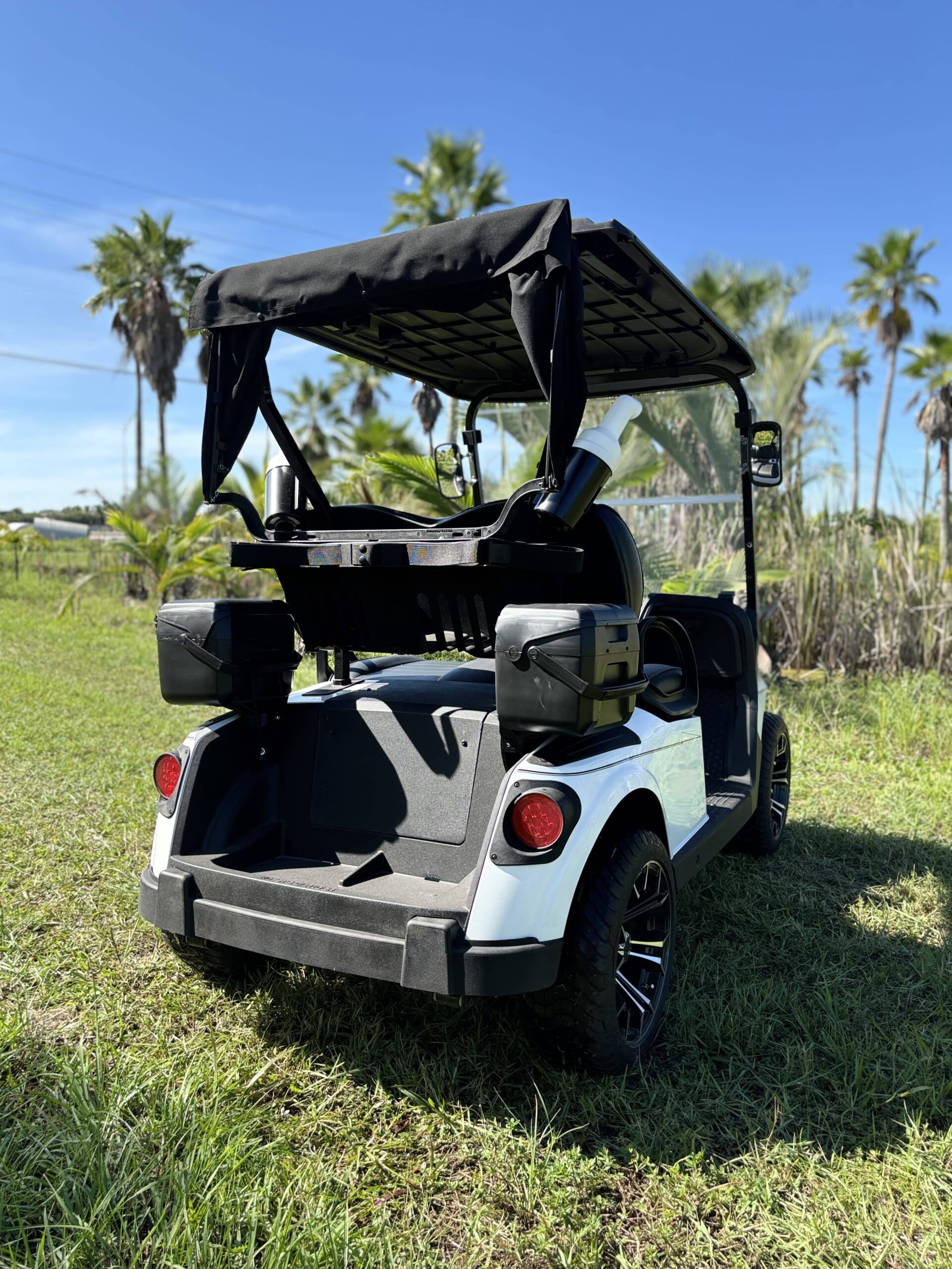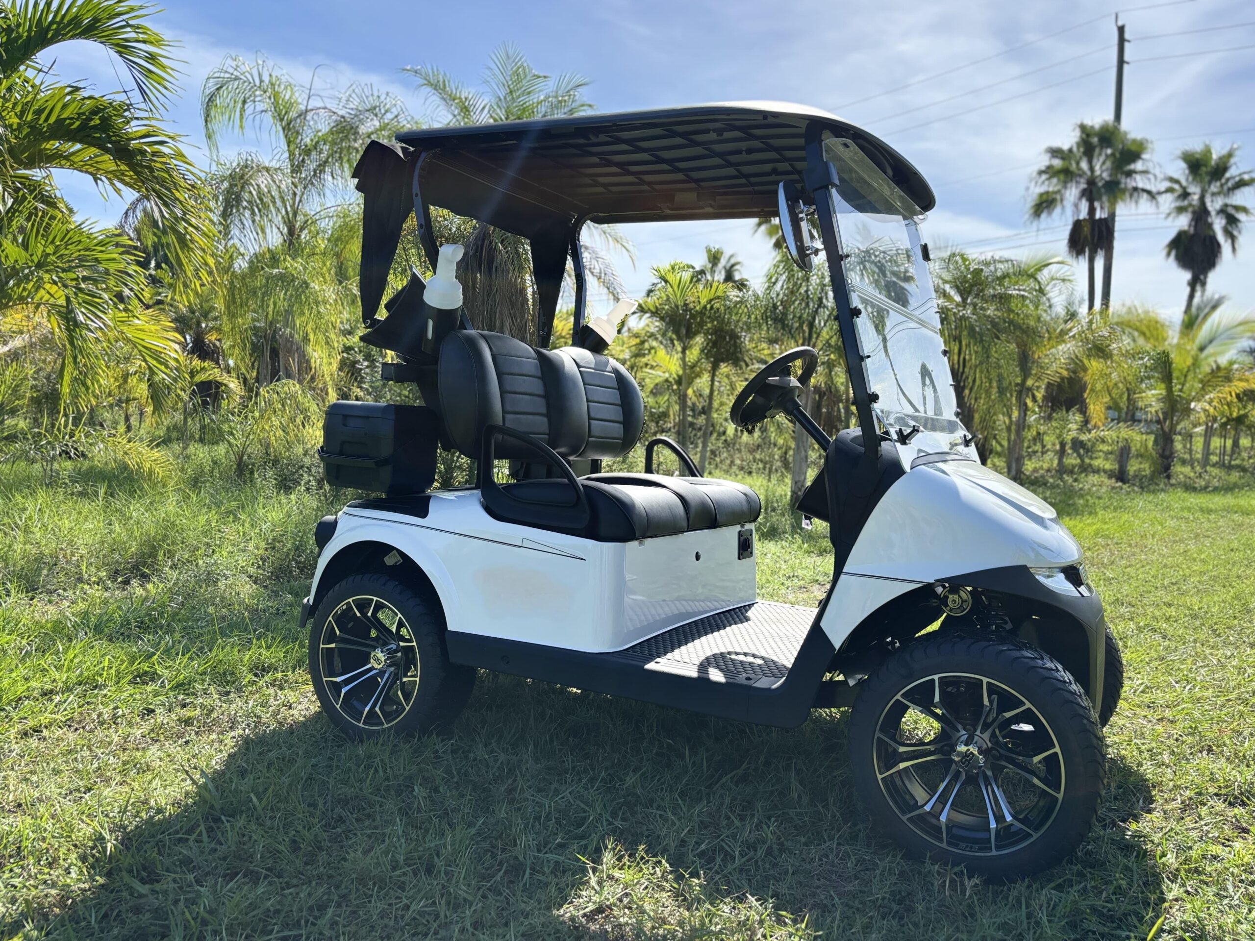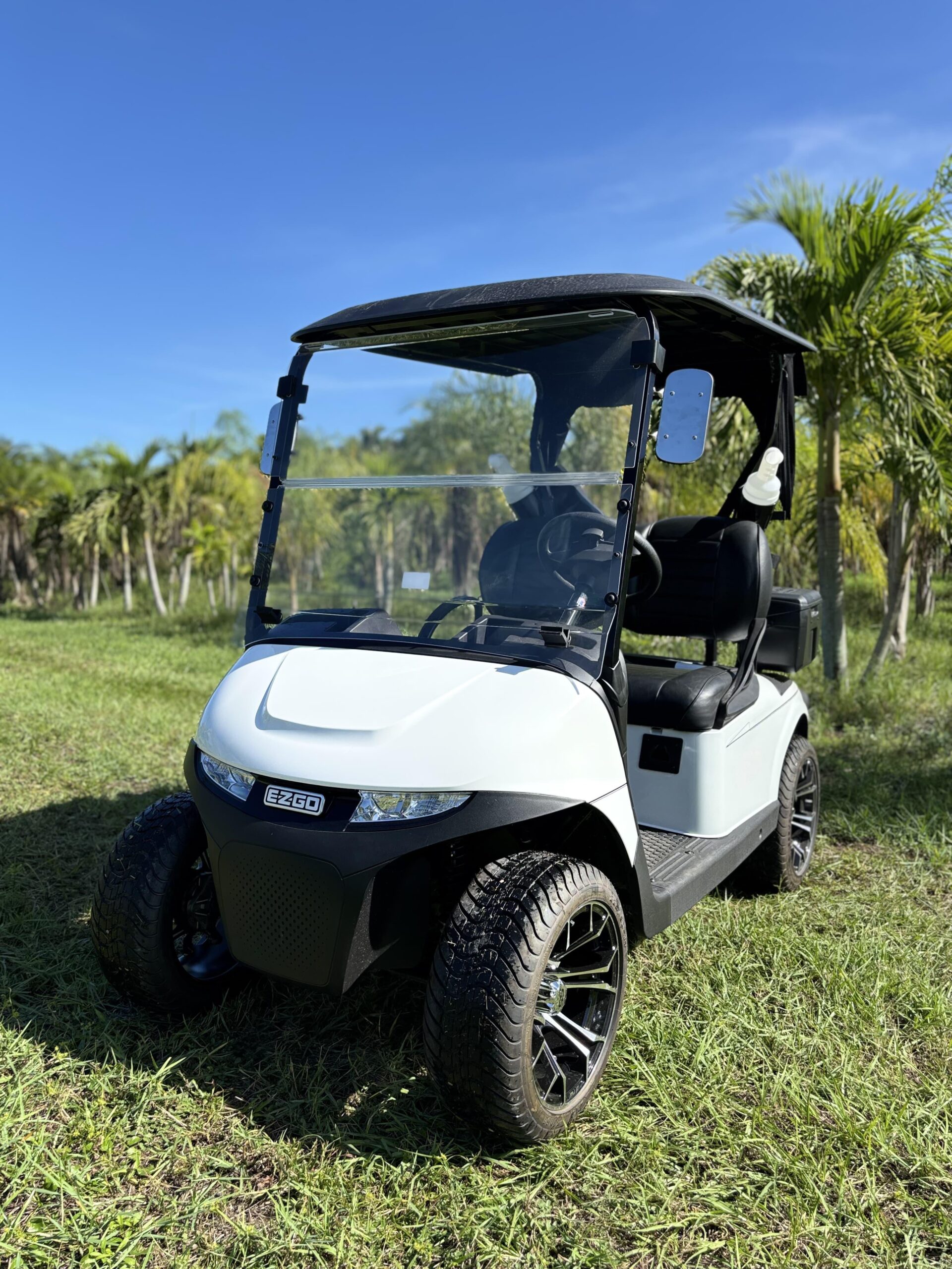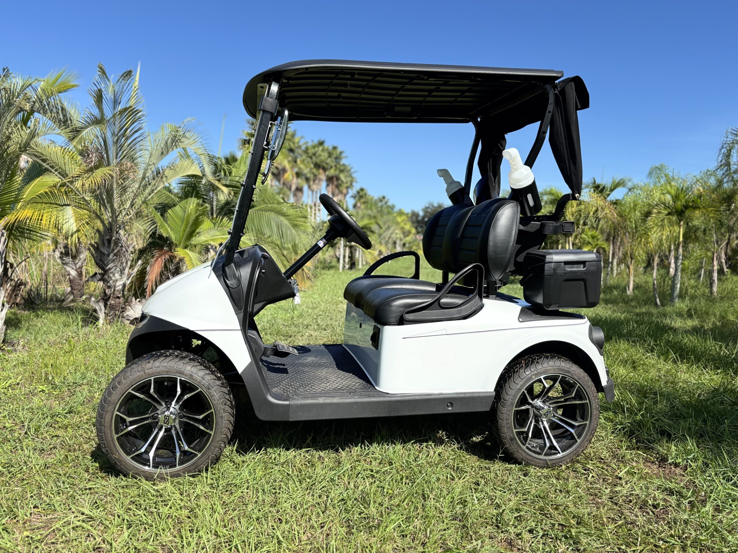 Drive in style with the 2026 E-Z-GO RXV ELiTE White with Premium Black Seats, available now at Sunshine Golf Car in South Florida. This elegant golf cart combines timeless white body styling with bold, premium black seating, creating a sophisticated contrast that commands attention on every drive.