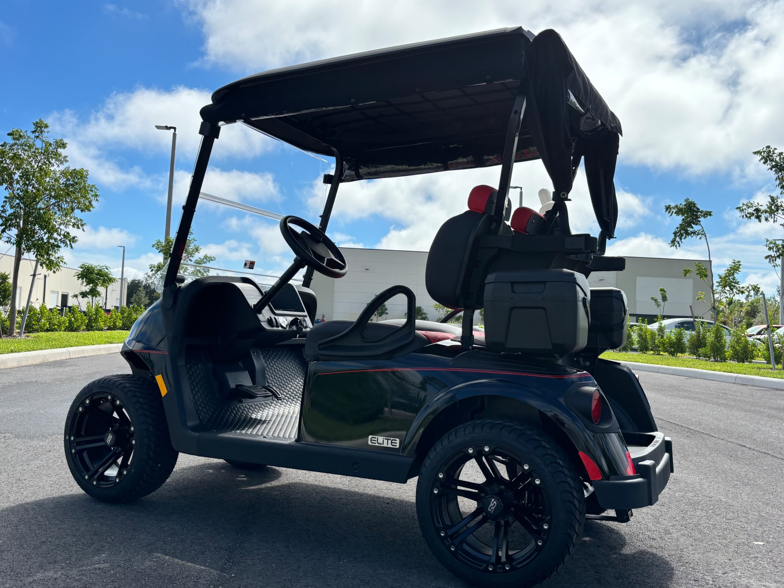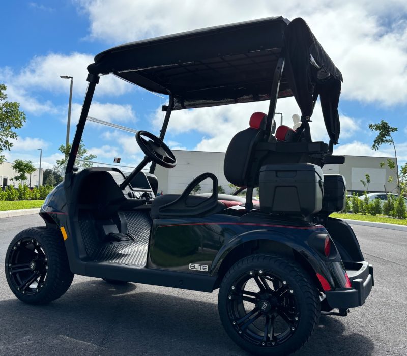 Elevate your game with the 2026 E-Z-GO RXV2 ELiTE, a premium, golf-ready cart that combines luxury, performance, and cutting-edge lithium battery technology. Finished in bold black with standout 14” wheels and wrapped in a weather-resistant Sunbrella enclosure, this cart is engineered for South Florida living.