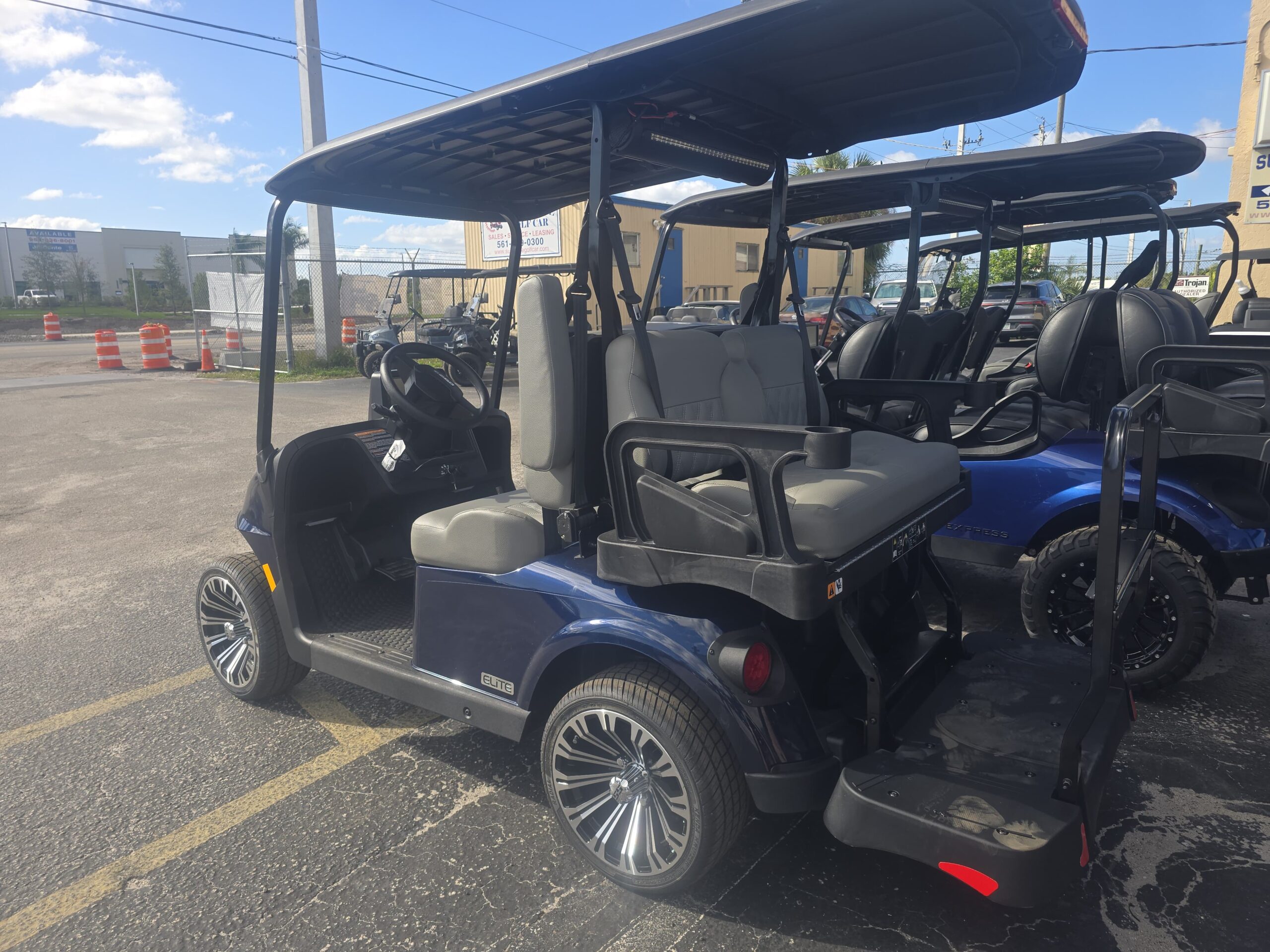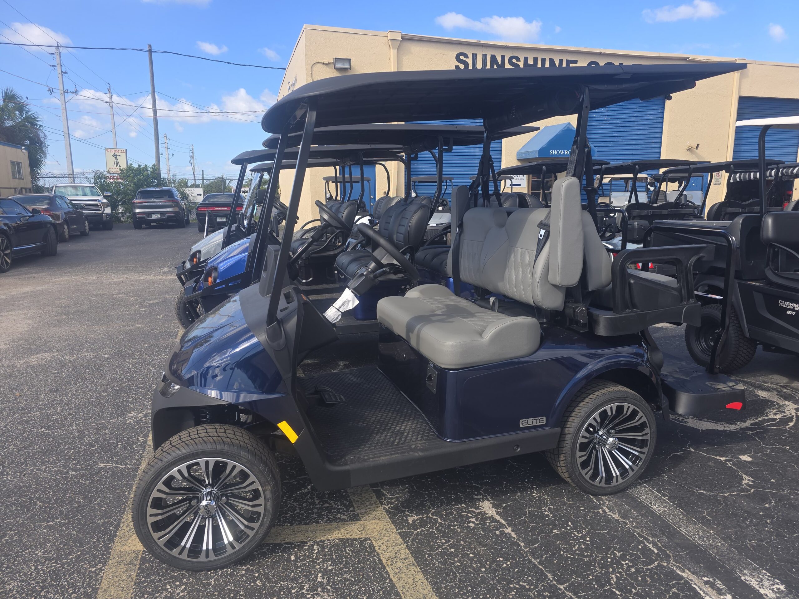 Stand out with the 2026 E-Z-GO RXV 4 Summit XTL – Pat Blue, now available at Sunshine Golf Car South Florida. This premium four-seat electric golf cart combines refined style, advanced technology, and exceptional performance to elevate your ride for golf courses, communities, and everyday cruising.