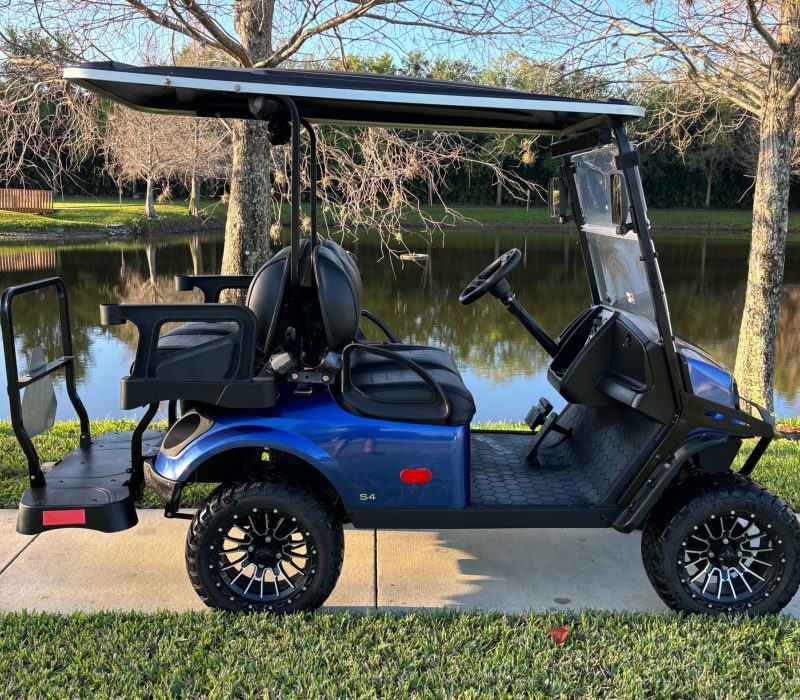 Cruise in comfort and style with this 2022 E-Z-GO Express S4 gas golf cart. Powered by a fuel-injected engine, this 4-passenger model delivers smooth, reliable performance. Finished in a sleek blue and fully street legal, it’s perfect for neighborhood rides, beach cruising, or everyday convenience.