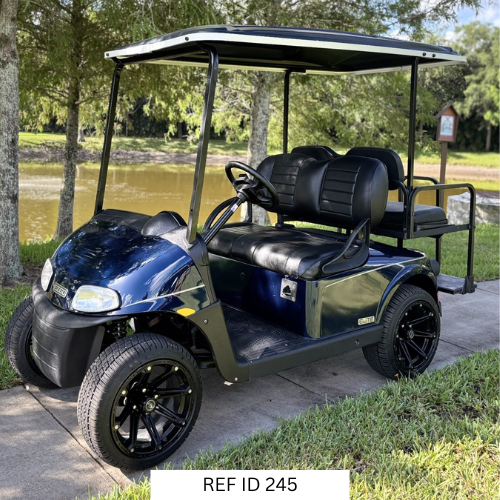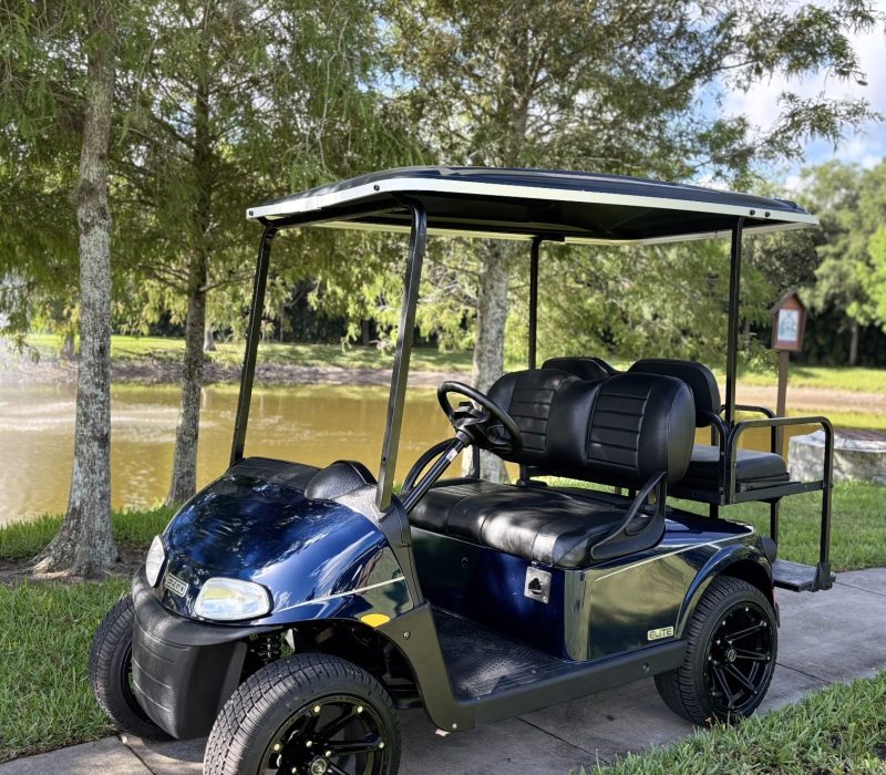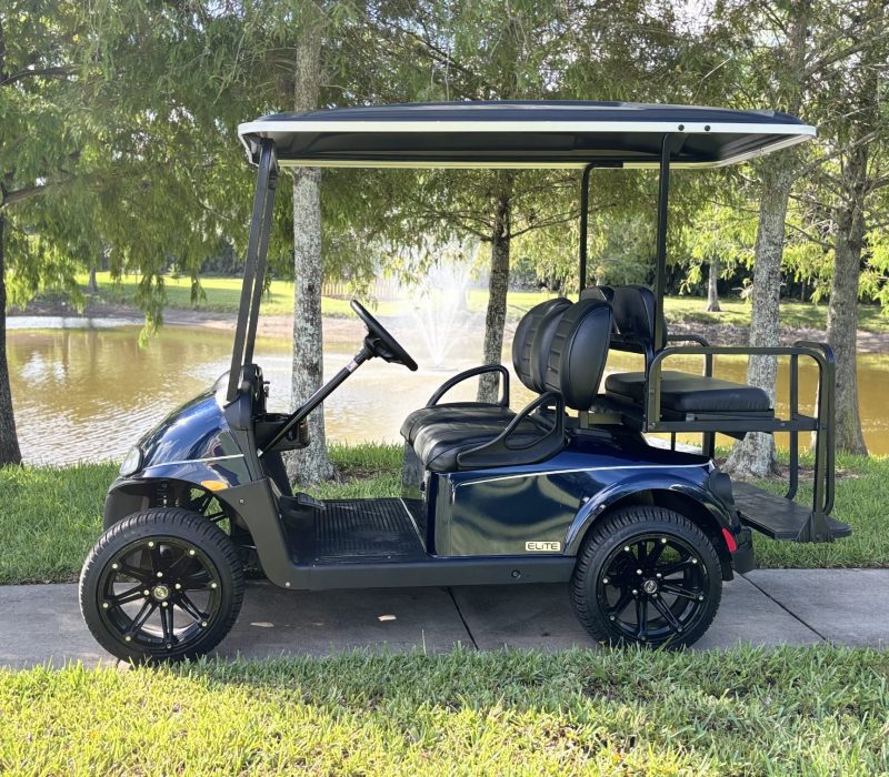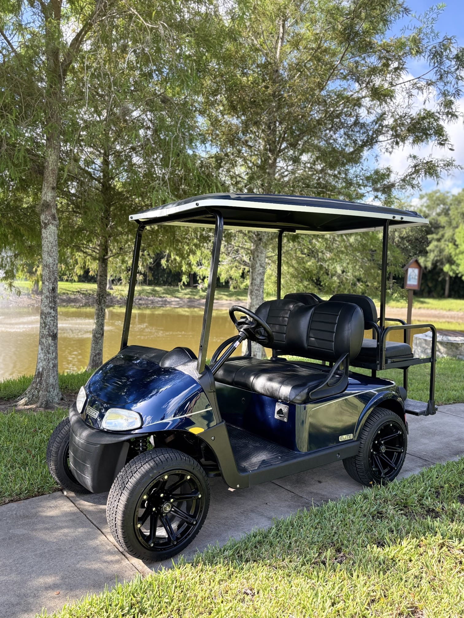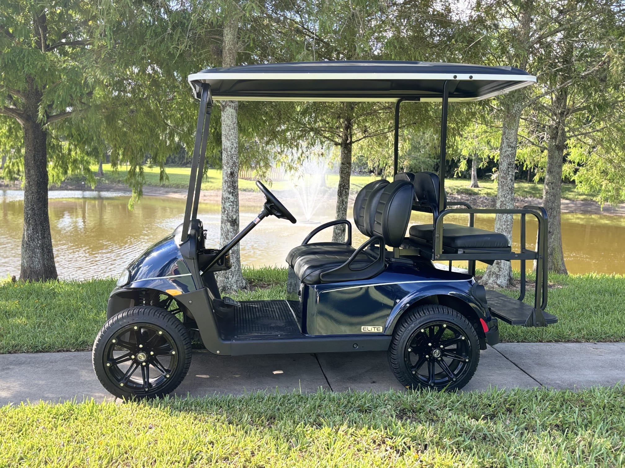 Turn heads with this 2022 E-Z-GO RXV Elite in bold Blue, built to carry four passengers in comfort and style. Powered by a reliable lithium battery, this cart offers whisper-quiet operation and virtually zero maintenance.