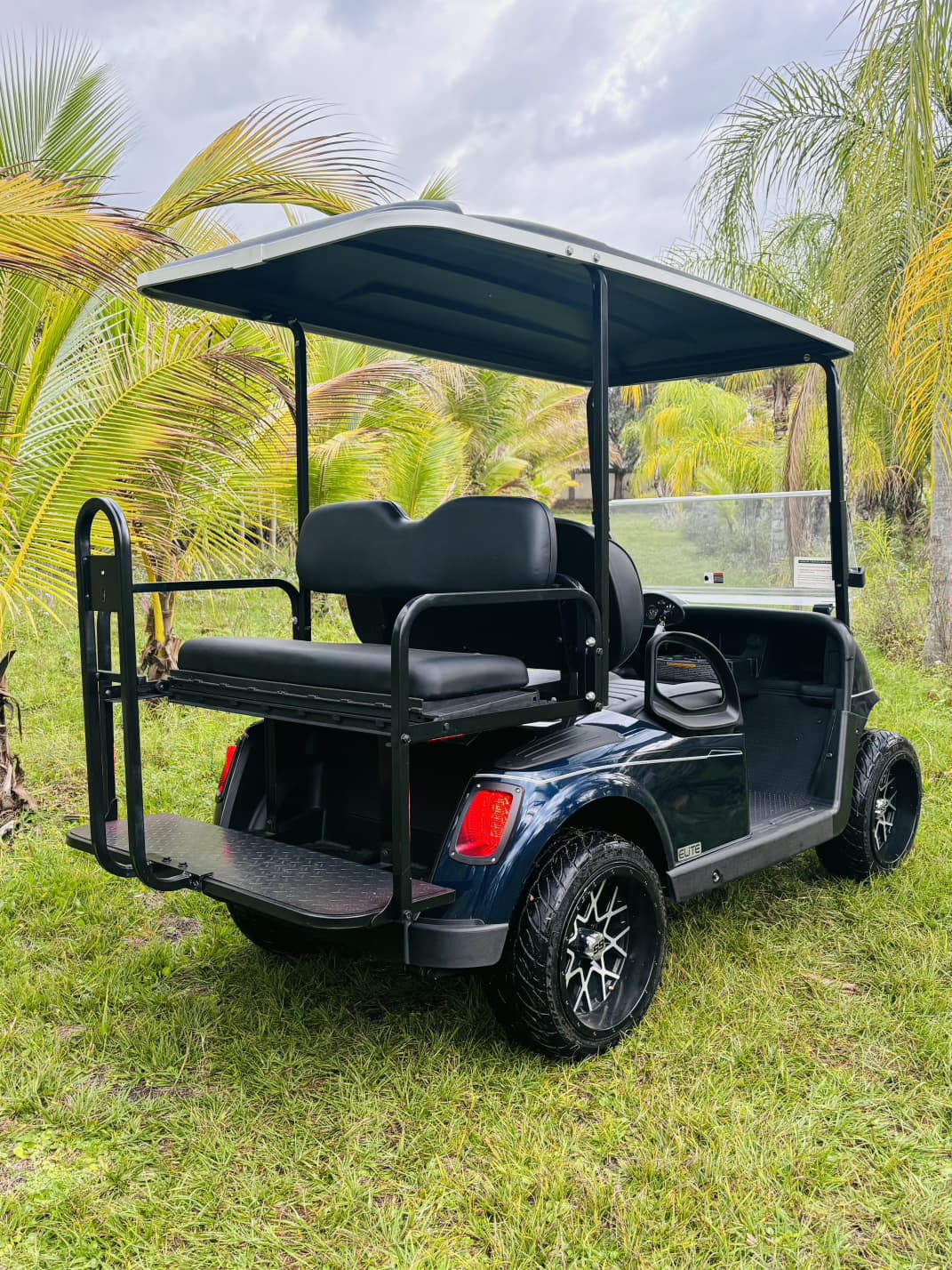 Experience the perfect blend of style and technology with the 2022 E-Z-GO RXV Elite in striking Patriot Blue. This 4-passenger golf cart features premium seating, smooth 14″ wheels, and advanced Samsung SDI lithium batteriesoffering zero-maintenance, eco-friendly power and exceptional energy efficiency.