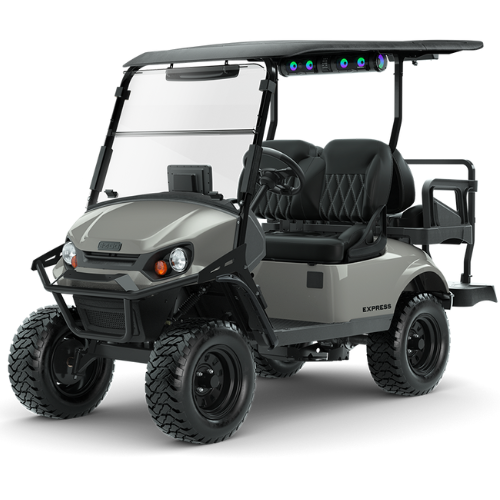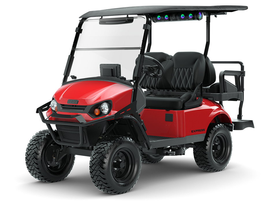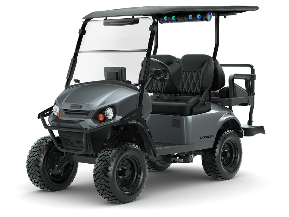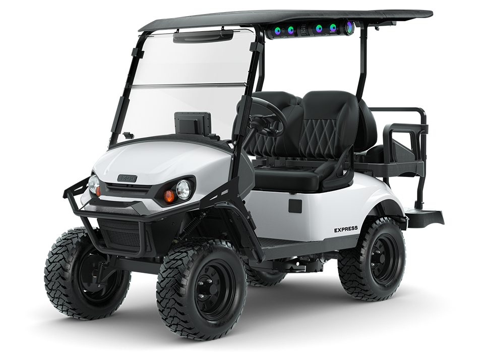 The E-Z-GO® Express 4 is engineered to perform. Enjoy LED headlights, lifted and standard ride height options, and premium offerings for the perfect ride. With all-new Technology packages and luxury seating options, every turn of the ignition is the start of a great time.