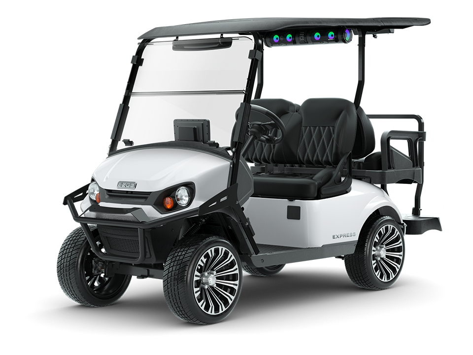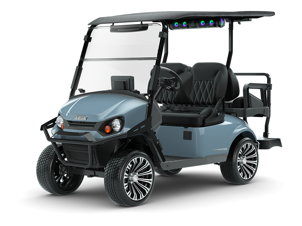 The E-Z-GO® Express 4 is engineered to perform. Enjoy LED headlights, lifted and standard ride height options, and premium offerings for the perfect ride. With all-new Technology packages and luxury seating options, every turn of the ignition is the start of a great time.