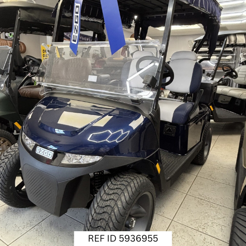 Stand out on the course and in your community with the stunning 2026 E-Z-GO RXV2 ELiTE in Blue. This high-performance cart comes fully golf ready, and features custom seats, 14″ premium wheels, and a Sunbrella weather enclosure, all powered by E-Z-GO’s industry-leading ELiTE™ lithium battery.