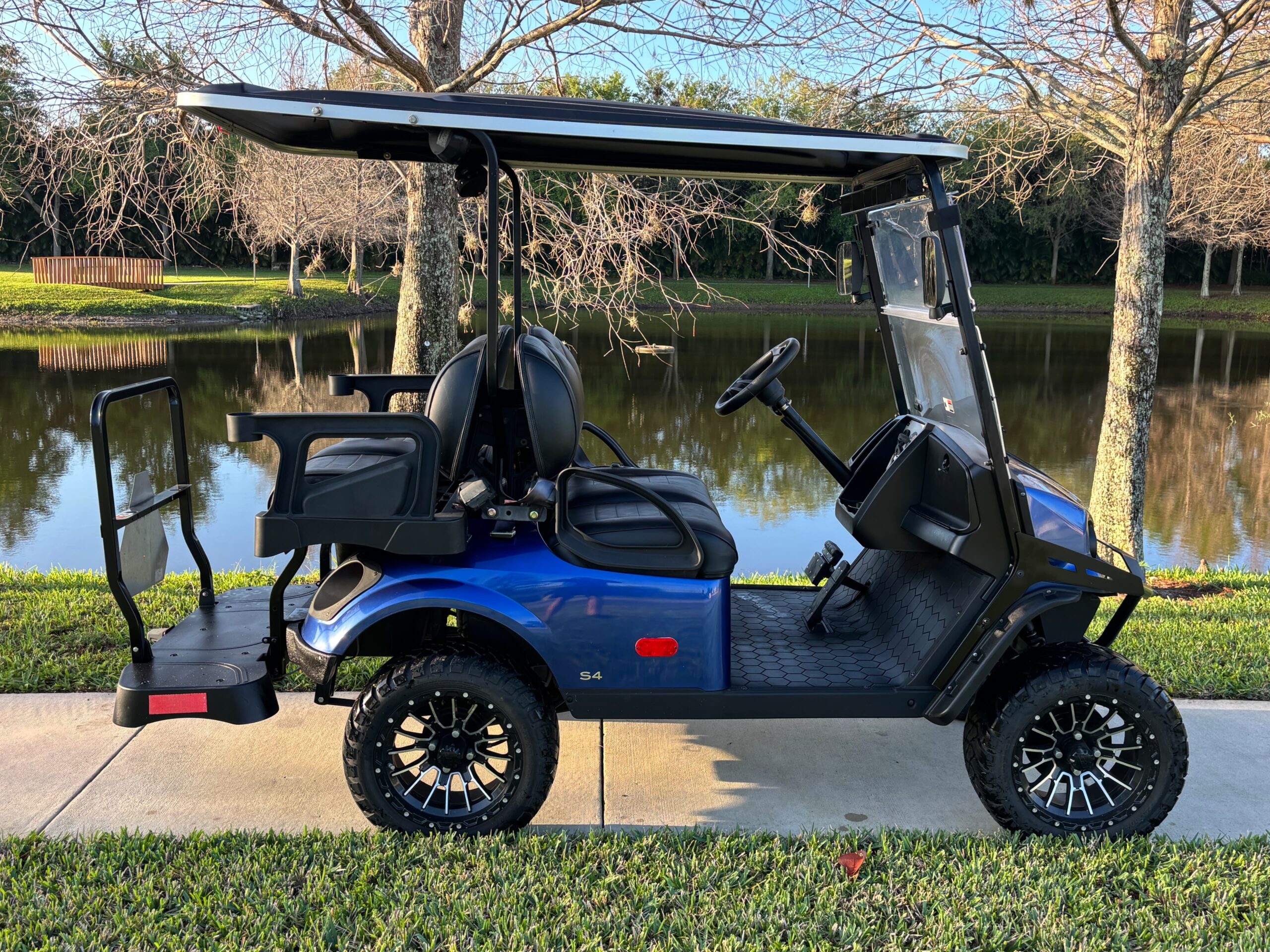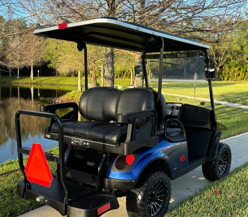Cruise in comfort and style with this 2022 E-Z-GO Express S4 gas golf cart. Powered by a fuel-injected engine, this 4-passenger model delivers smooth, reliable performance. Finished in a sleek blue and fully street legal, it’s perfect for neighborhood rides, beach cruising, or everyday convenience.