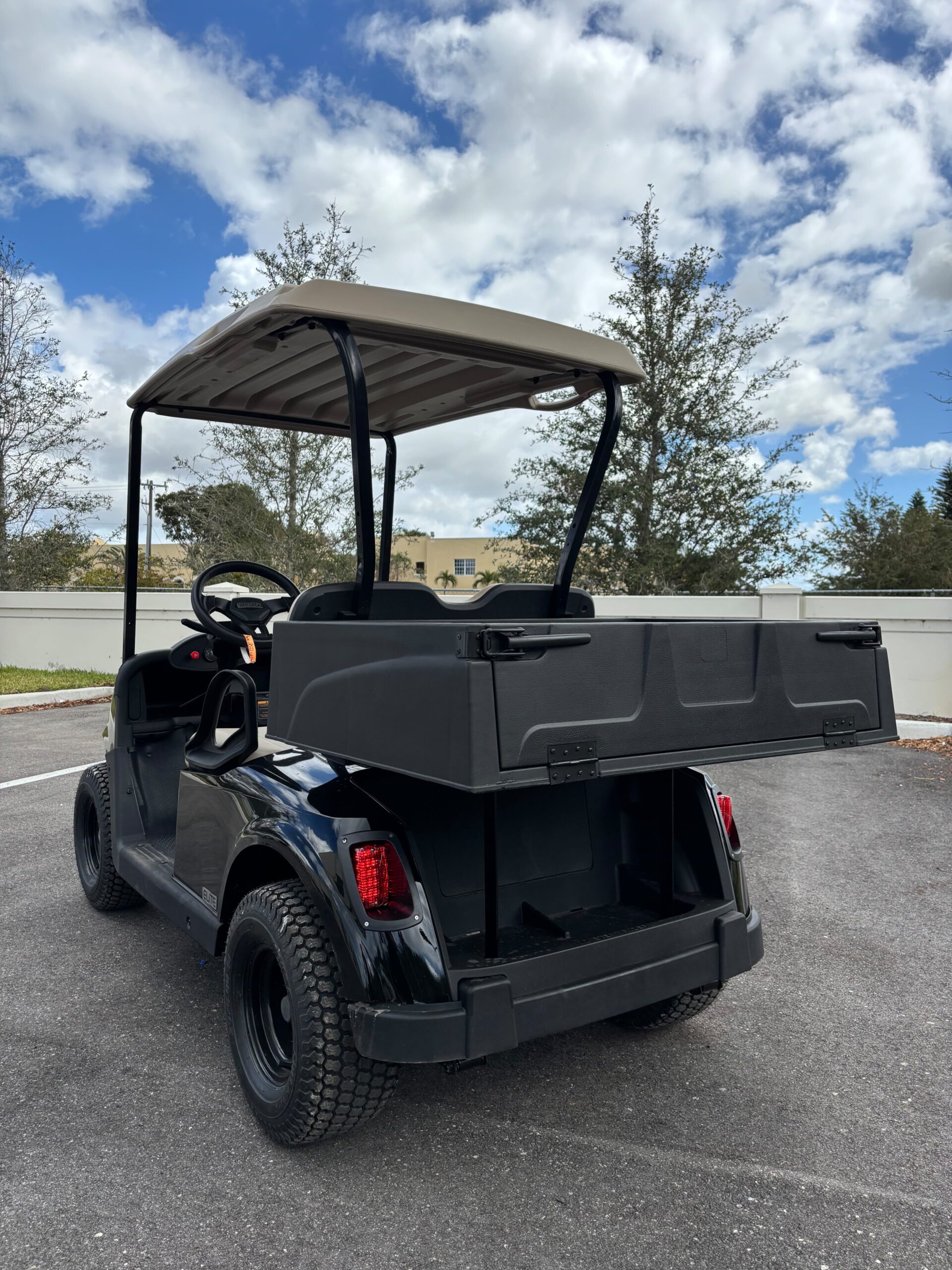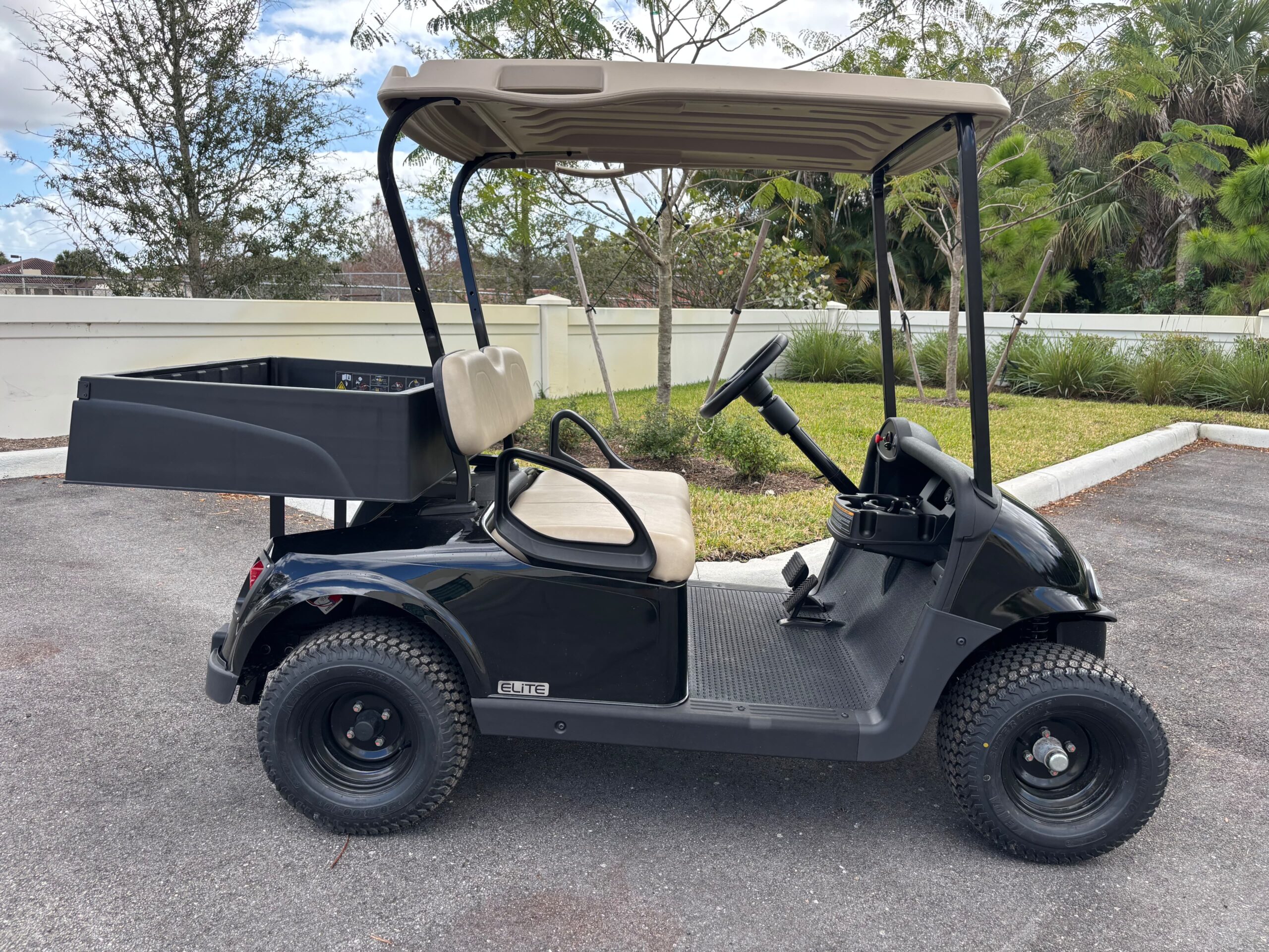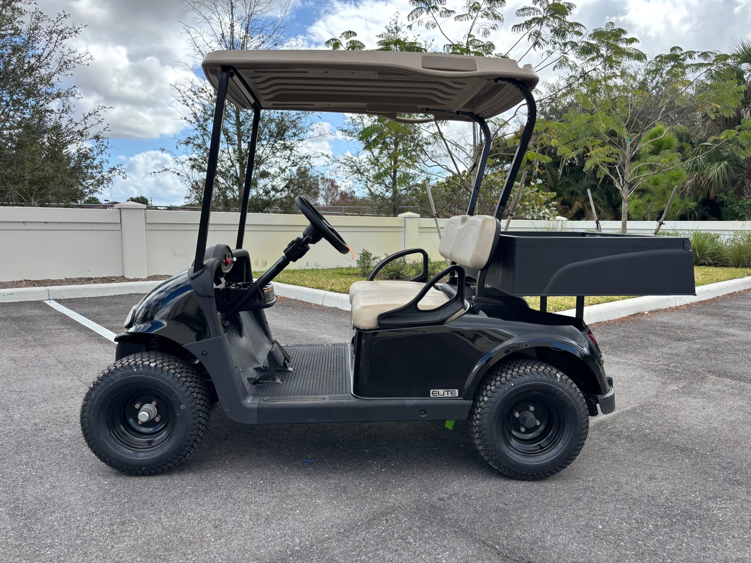 This 2022 E-Z-GO RXV Freedom Elite in vibrant Black is equipped with a sturdy utility cargo box and powered by a dependable lithium battery for smooth, quiet performance. Designed for work sites, maintenance tasks, and large properties, this cart offers durability and efficiency in one stylish package.